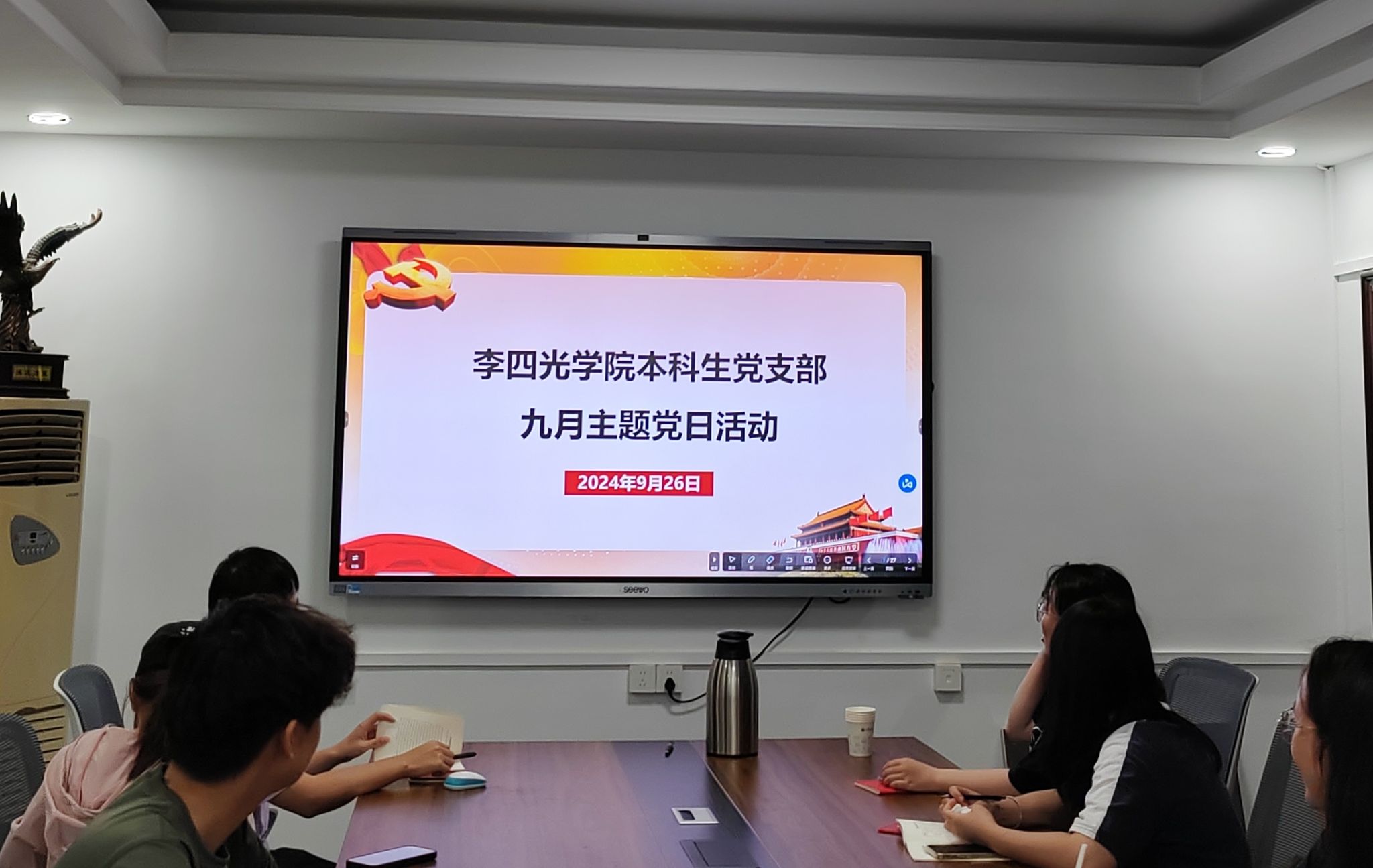 (通讯员 王柠)为深入学习贯彻党的二十届三中全会精神,加深党员对党的理论、方针政策的理解和把握,2024年9月26日晚19:00,bat365正版唯一官网本科生党支部于行政楼217成功开展了九月主题党日活动。参会人员有bat365正版唯一官网本科生党支部全体党员。会议由李佳铖同志主持。