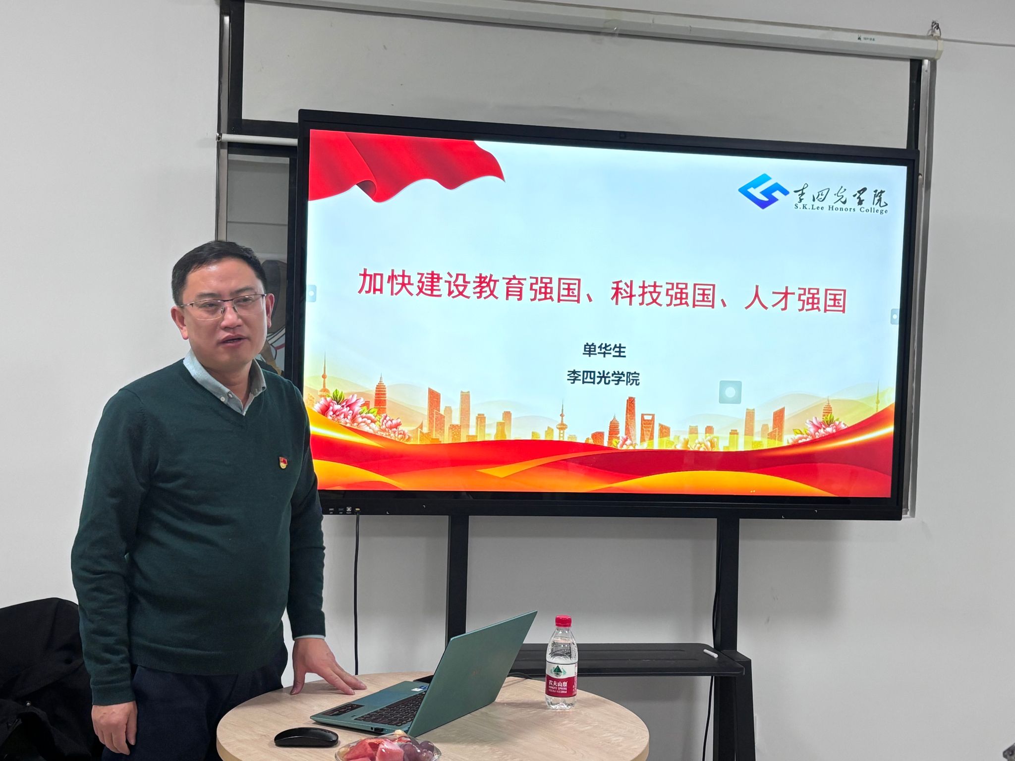 本次主题党日活动由单院长主讲,围绕“加快建设教育强国、科技强国、人才强国”的主题展开深入分享。单院长从国家战略高度出发,结合当前时代背景和发展需求,详细阐述了教育、科技、人才一体化的内在联系及其在在全面建设社会主义现代化国家中具有极其重要的作用。