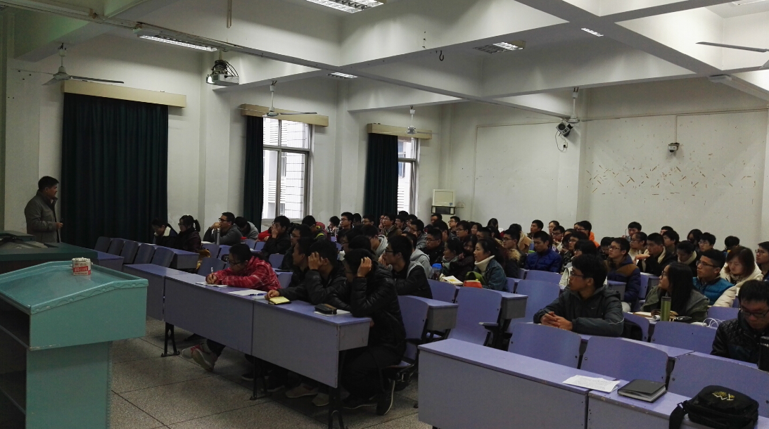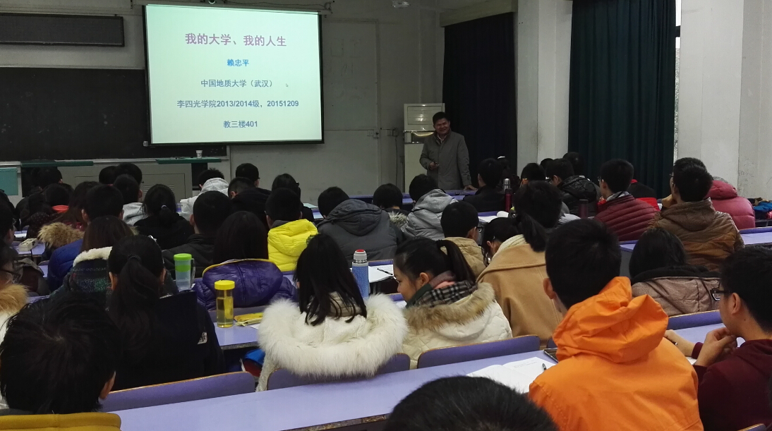 12月9日下午16:00,bat365正版唯一官网2015-2016学年地球科学菁英班“与名师面对面”系列讲座第三讲在教三楼401顺利举行,地球科学学院赖忠平老师为bat365官网菁英班学生带来“我的大学,我的人生”的主题讲座,bat365官网13、14级全体学生参加。