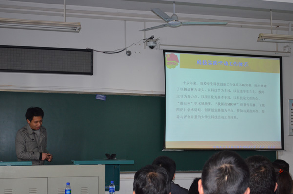 春日融融,万物萌发。为了让同学们全面了解我校大学生科技创新活动,学习科创经验,丰富“第二课堂”, 3月14日上午10点,bat365官网大学生科技创新活动指导专题讲座在教一楼401举行,校团委副书记严嘉老师和校团委科技实践部负责人朱丹老师应邀参加,为同学们“传道、授业、解惑”。
