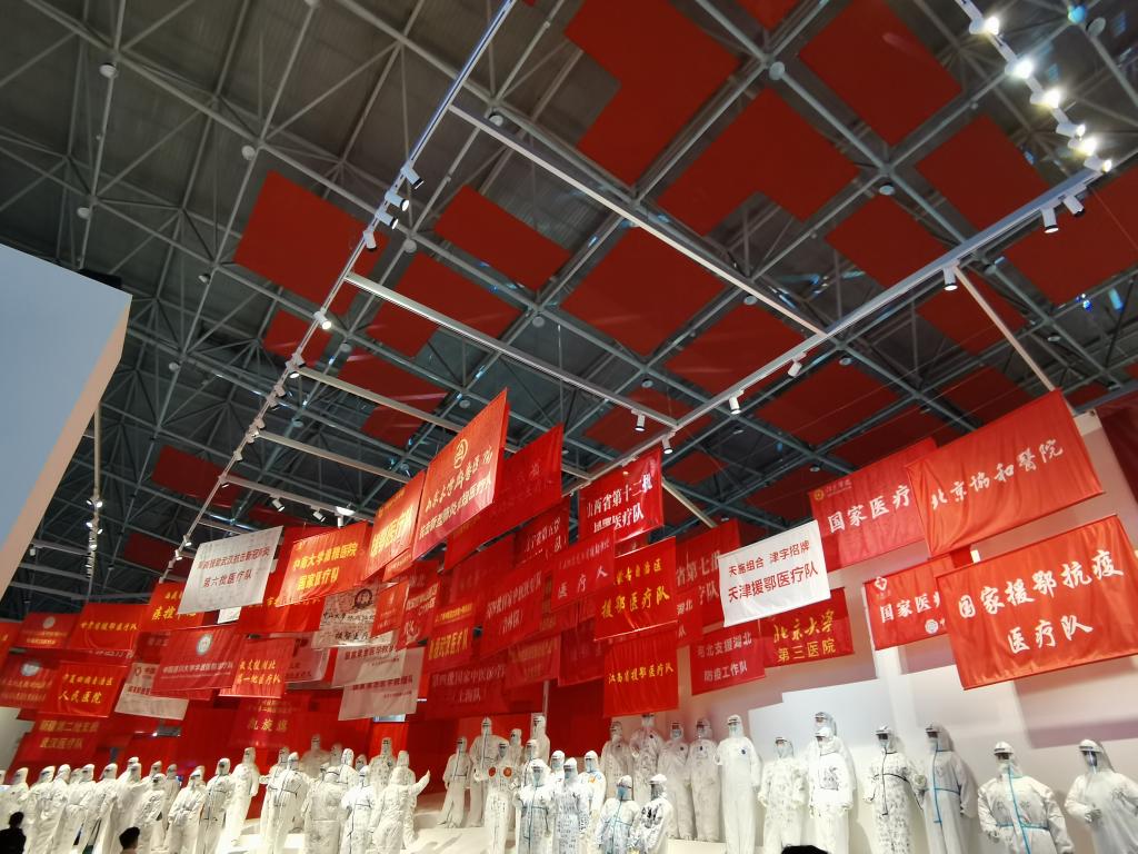此次展览由中宣部指导,湖北省委、省政府承办,于10月15日在武汉客厅开幕。设有序篇、尾厅和“运筹帷幄、掌舵领航”“生死阻击、艰苦卓绝”“英雄城市、英雄人民”“八方支援、共克时艰”“疫后重振、浴火重生”“团结协作、命运与共”等6大主题展区。展览展线长1445米,展出照片1100余张、视频45个,设计大型场景33处,互动项目18处。