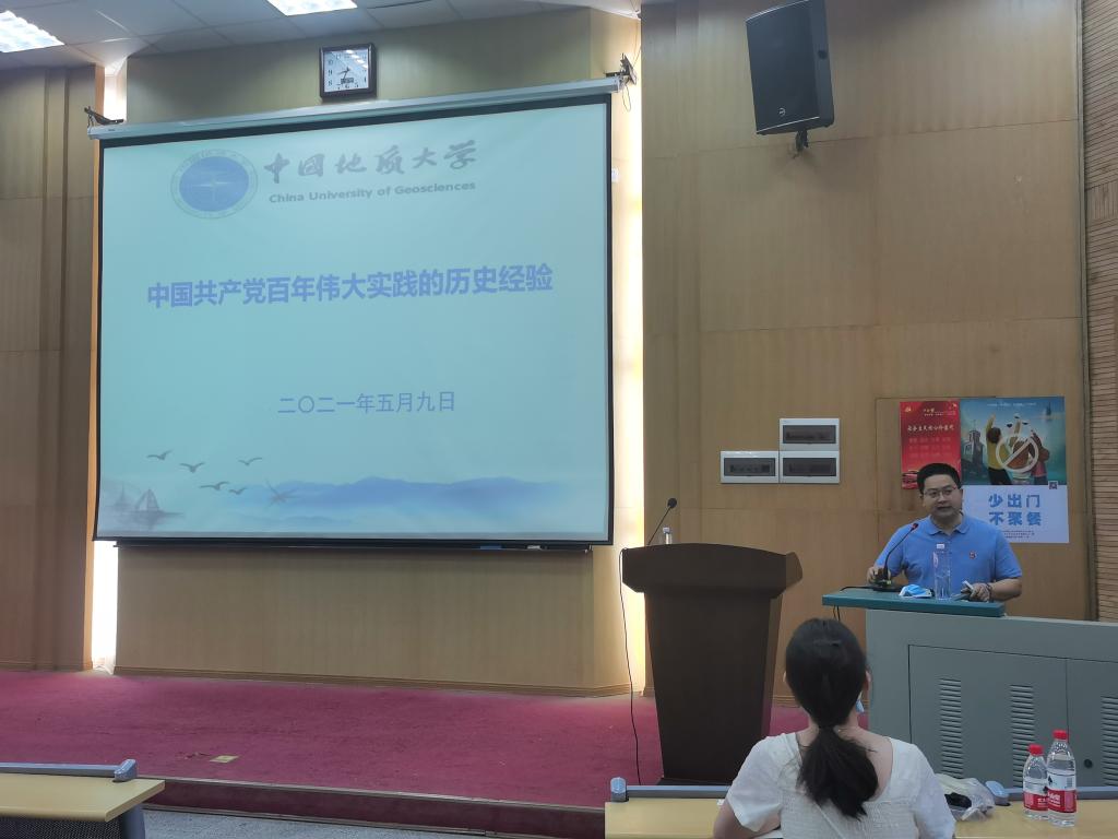 5月9日上午8:30,马克思主义学院副院长陈军老师以《中国共产党百年伟大实践的历史经验》为题为来自工程学院、马克思主义学院、体育学院、bat365正版唯一官网的400余名学生授课。陈老师从坚定不移地走中国特色社会主义道路,不断推进社会主义现代化建设,努力实现中华民族伟大复兴中国梦;坚持在实践基础上进行理论创新,不断开辟马克思主义中国化新境界,实现党和国家指导思想与时俱进;坚持党的全面领导,不断以党的自我革命推动社会革命,凝聚推动民族复兴的磅礴力量;坚持以人民为中心,依靠人民创造历史伟业,在发展中创造幸福美好生活;坚持不断完善党和国家制度体系,切实把制度优势转化为治理效能,不断推进国家治理体系和治理能力现代化五个方面为同学们进行了详细的介绍。