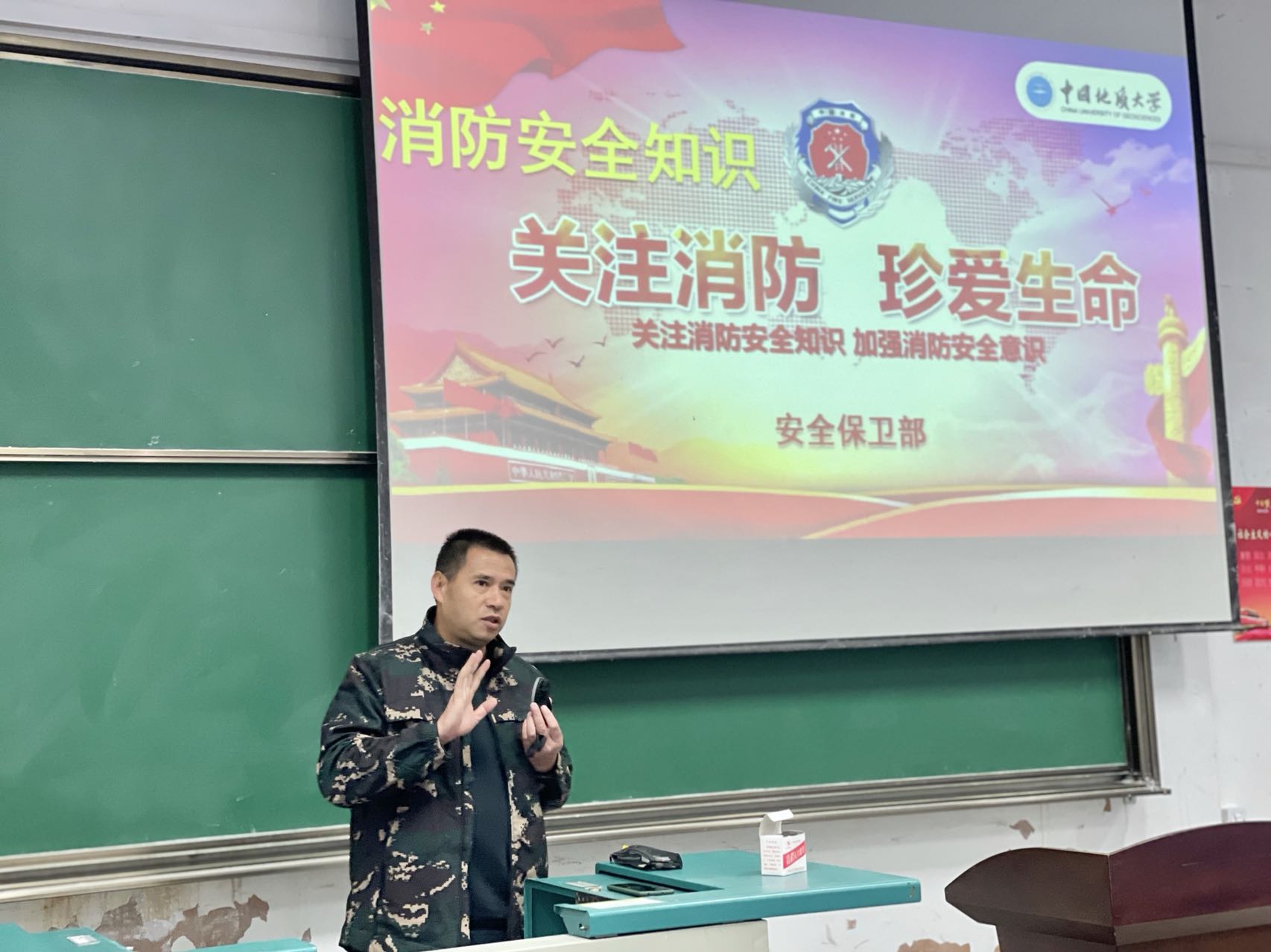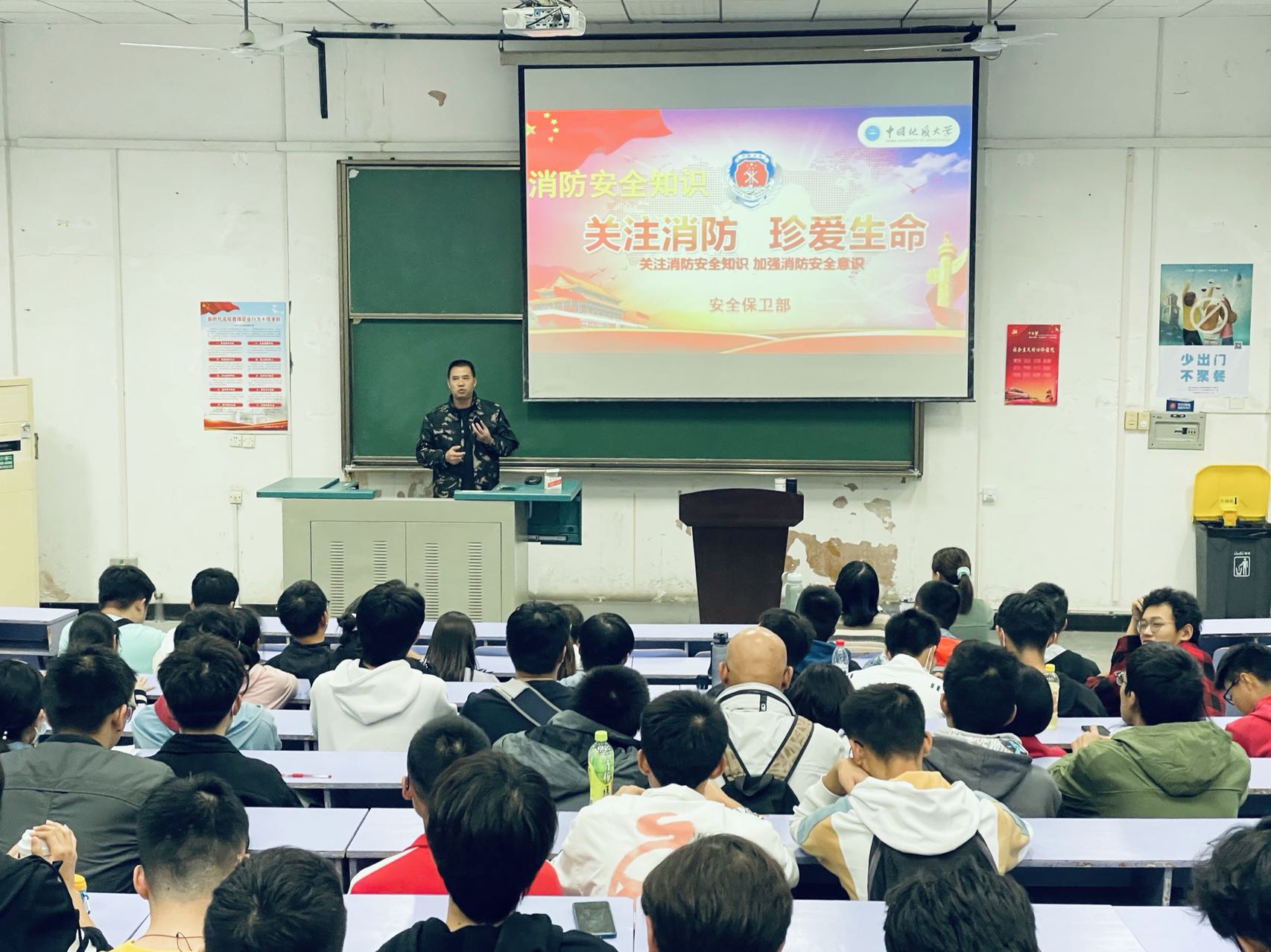 11月4日下午,在教三楼207,bat365正版唯一官网邀请学校安全保卫部消防科的刘从贵老师为同学们进行消防安全知识讲座。刘老师先从形成火的三要素讲起,结合发生在我们身边的现实案例,告诉同学们灭火的原理以及对于火势的判断方法。同时对于各种消防设备以及灭火器的使用方法也进行了详细的介绍。