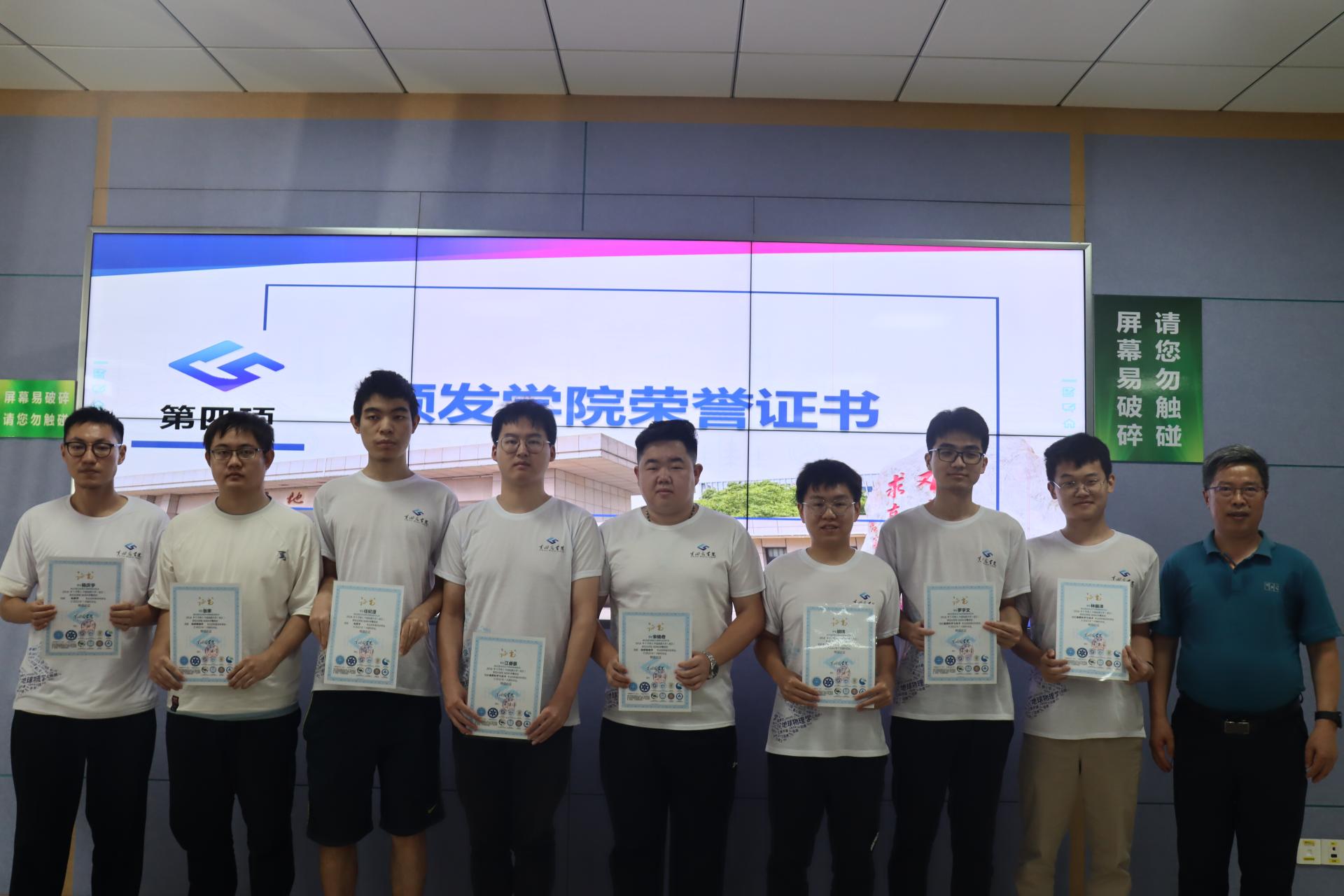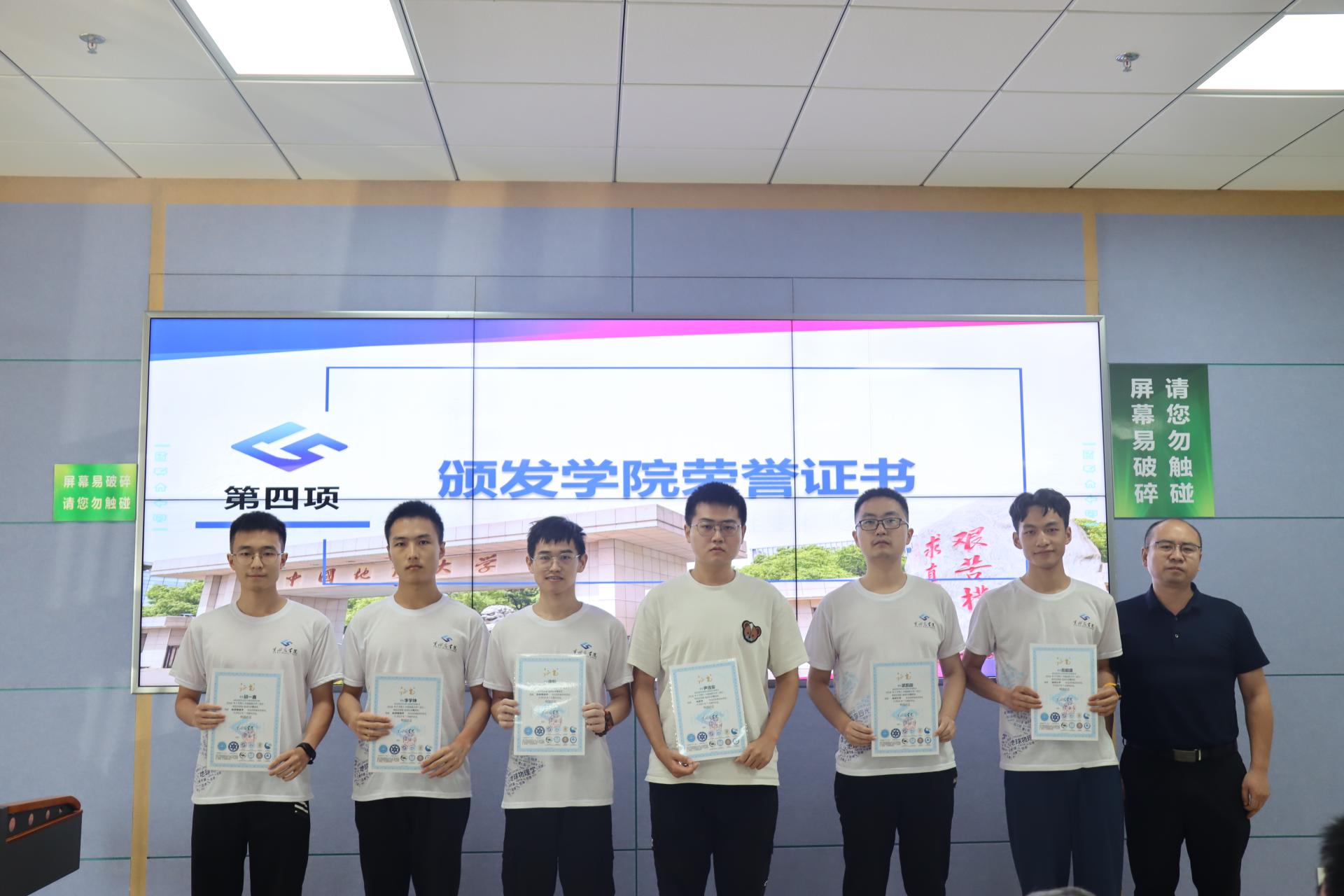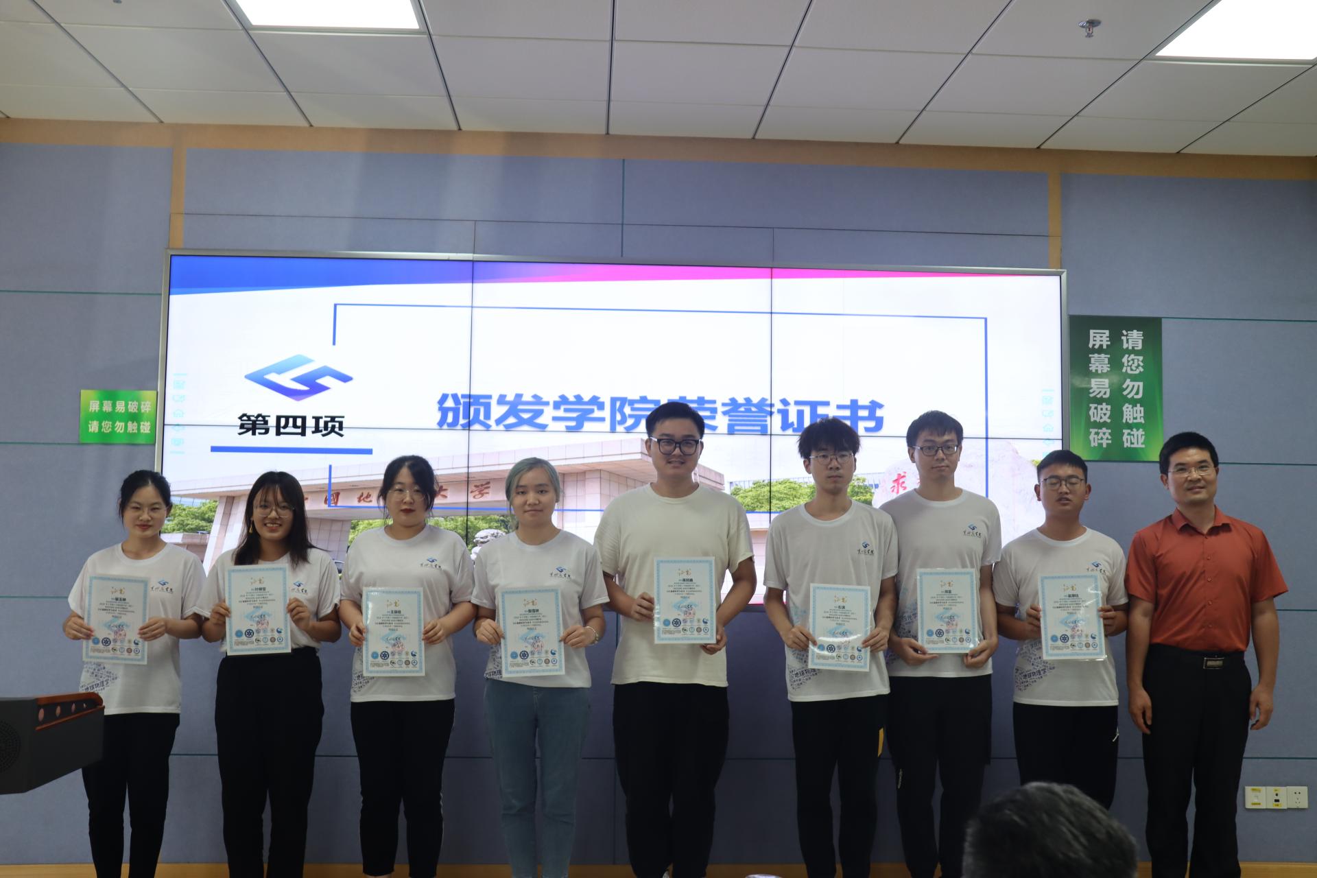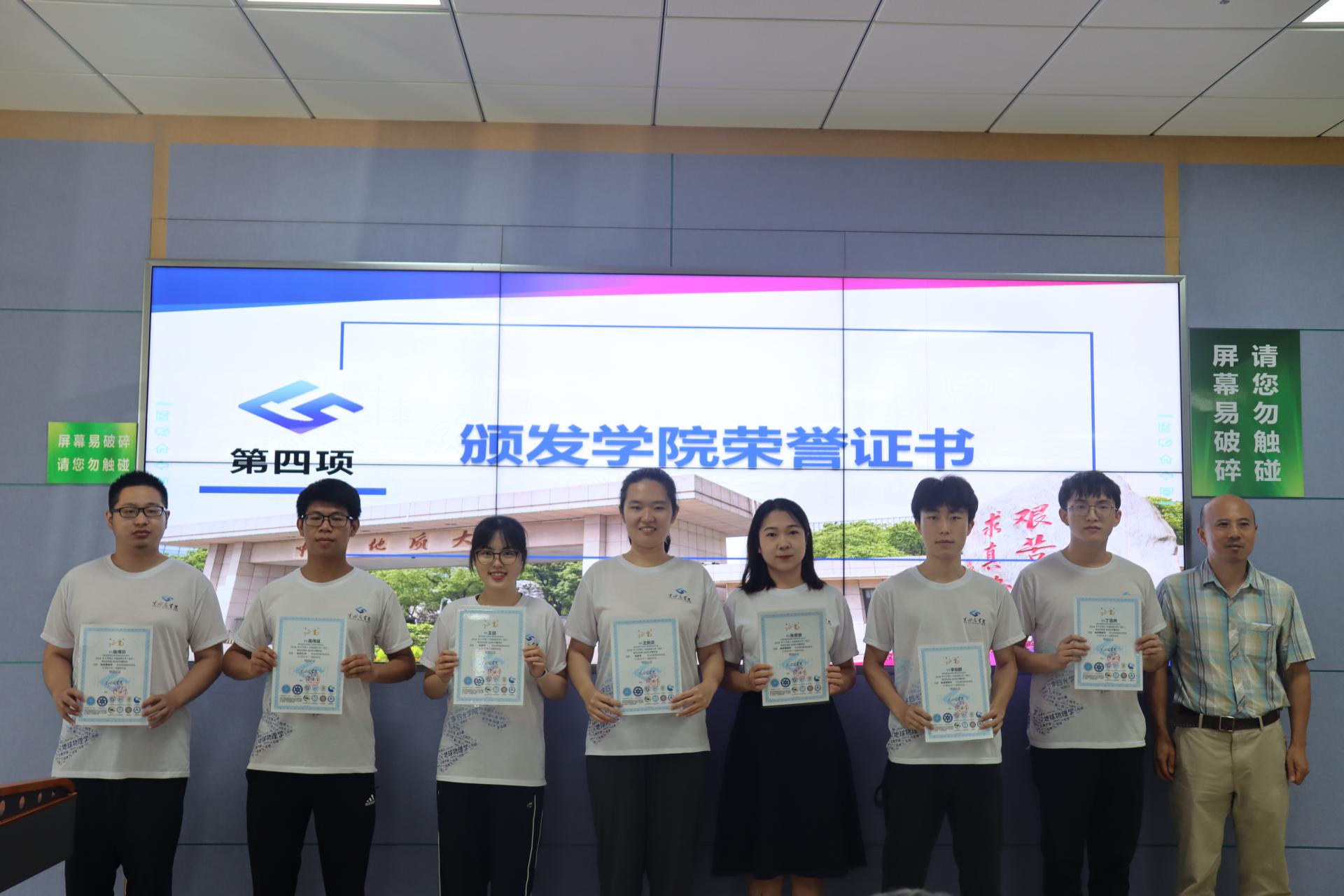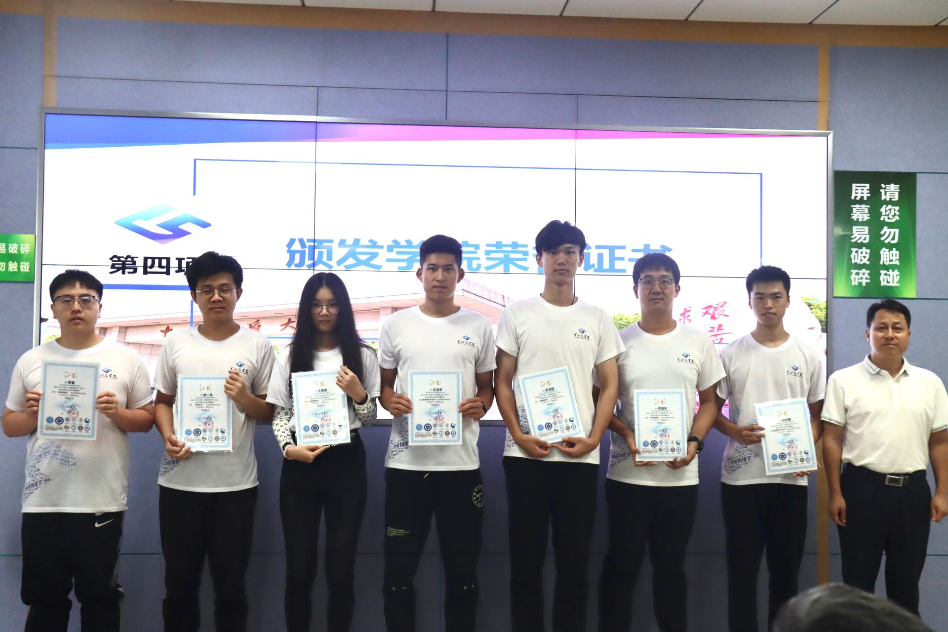 (领导嘉宾为毕业生颁发学院荣誉证书并合影)