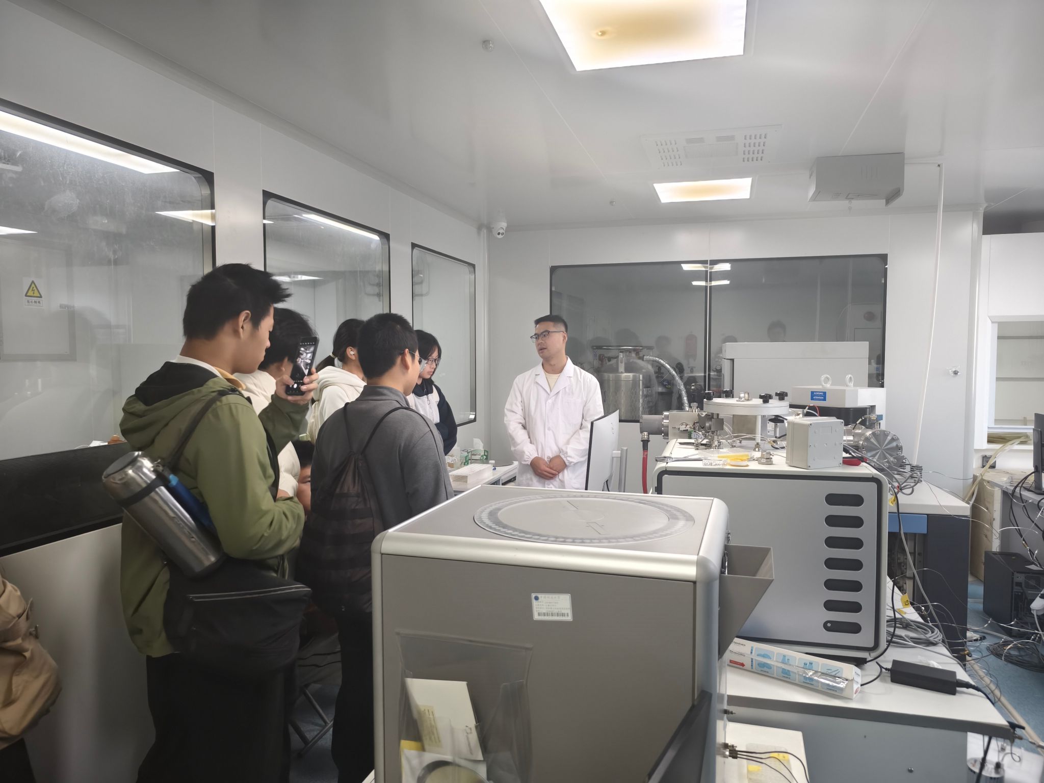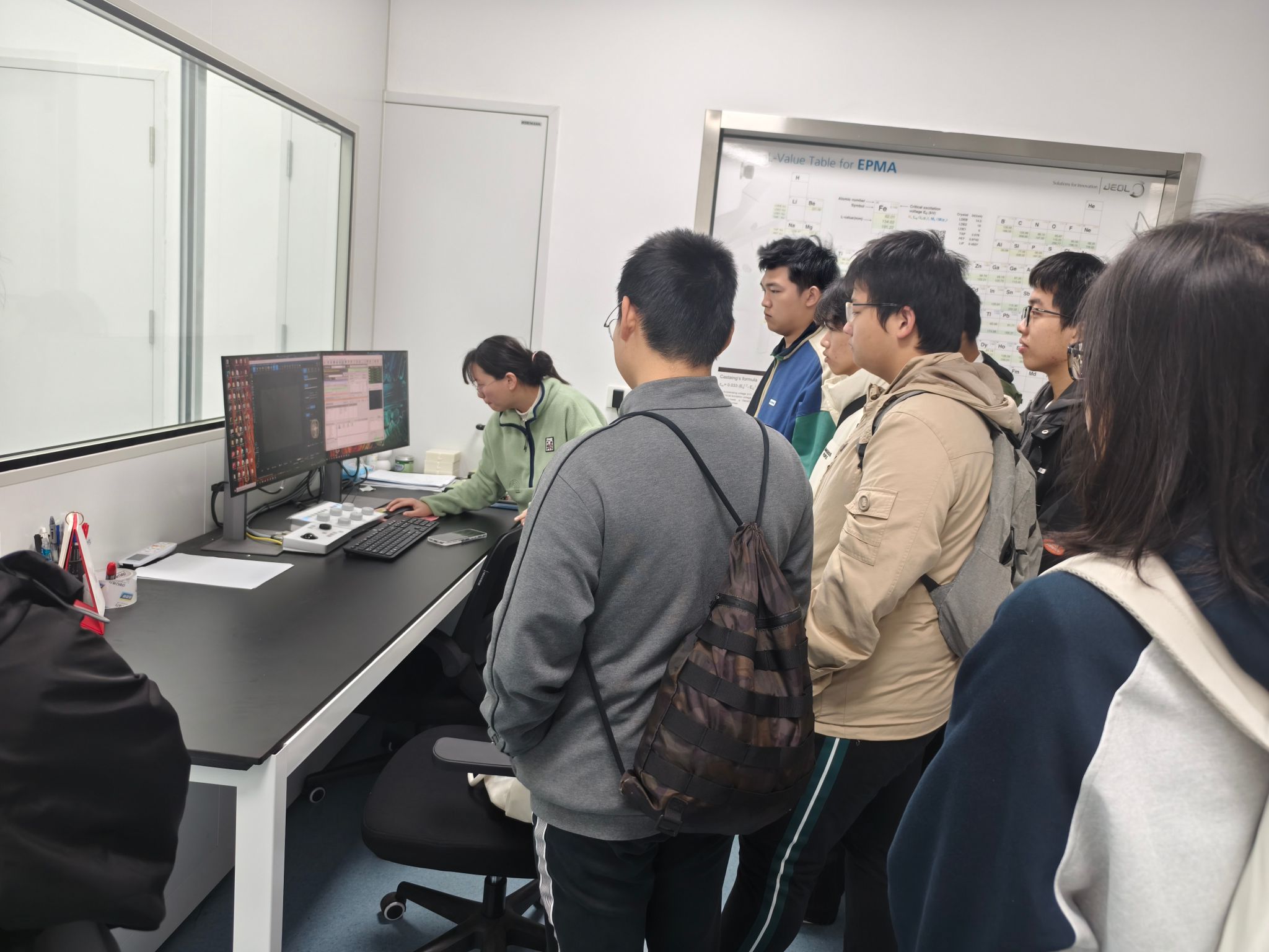听完陈国雄副主任对实验室的总体介绍,同学们分别在陈宇行,祝华壮,王越三位研究生的带领下,参观了地球深部实验室、激光微区分析实验室、矿床微区分析实验室、电子探针实验室、场发射扫描电镜实验室、稳定同位素比质谱仪实验室等,聆听了实验室老师们对各自实验室的详细介绍,并在与研究员们的交流中收获了更多的知识与感悟。