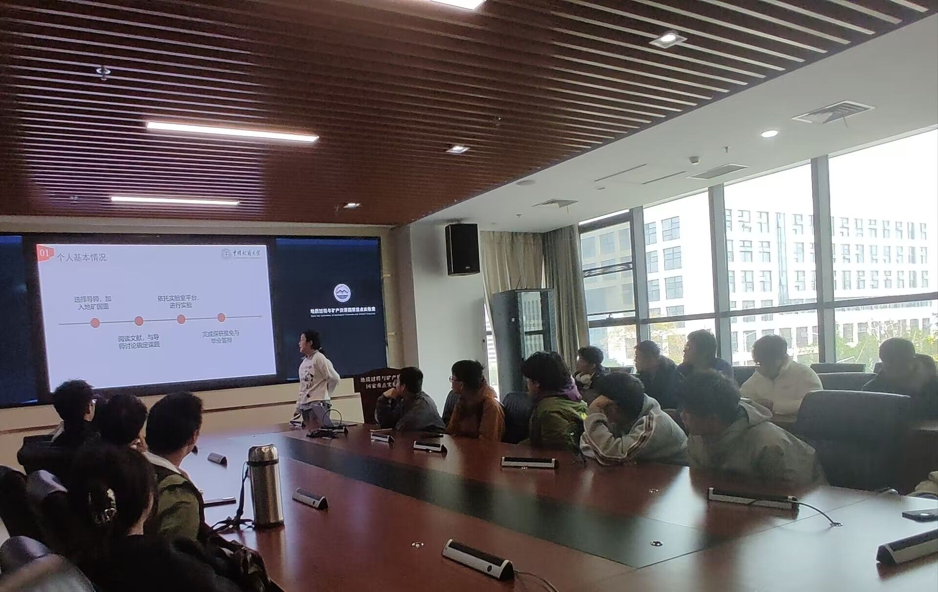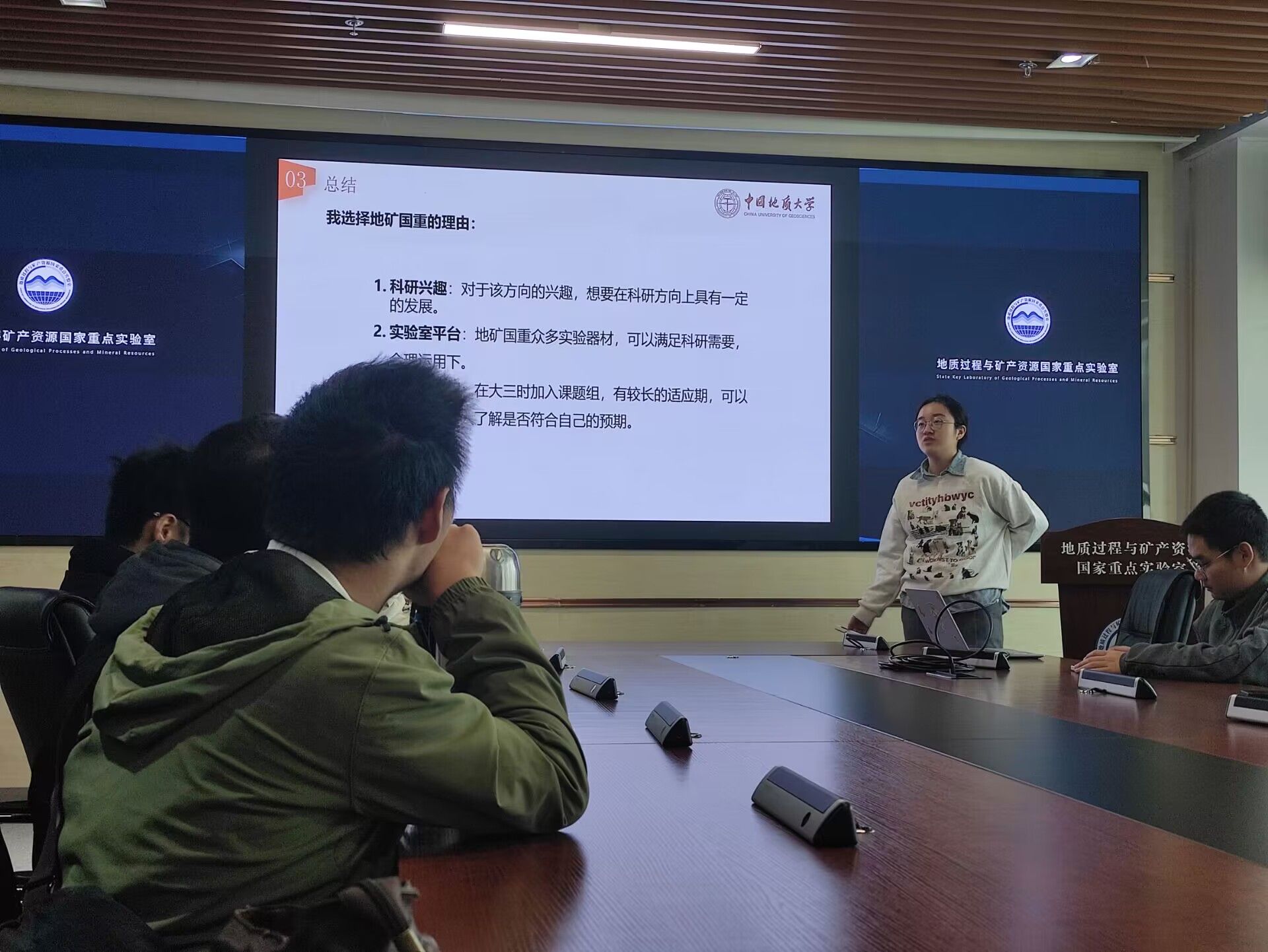 参观完实验室之后,同学们移步会议室,博士生袁则为大家分享了她在实验室研究生学习、科研工作的经历,让同学们了解到了科研人员背后的成长故事。袁则之前也是bat365正版唯一官网的学生,作为学姐,她告诉大家一定要在本科学习阶段积极接触和探索自己所感兴趣的研究领域,这样才能在未来的科研中明确前进方向并拥有走下去的不竭动力,为地学科研做出贡献。
