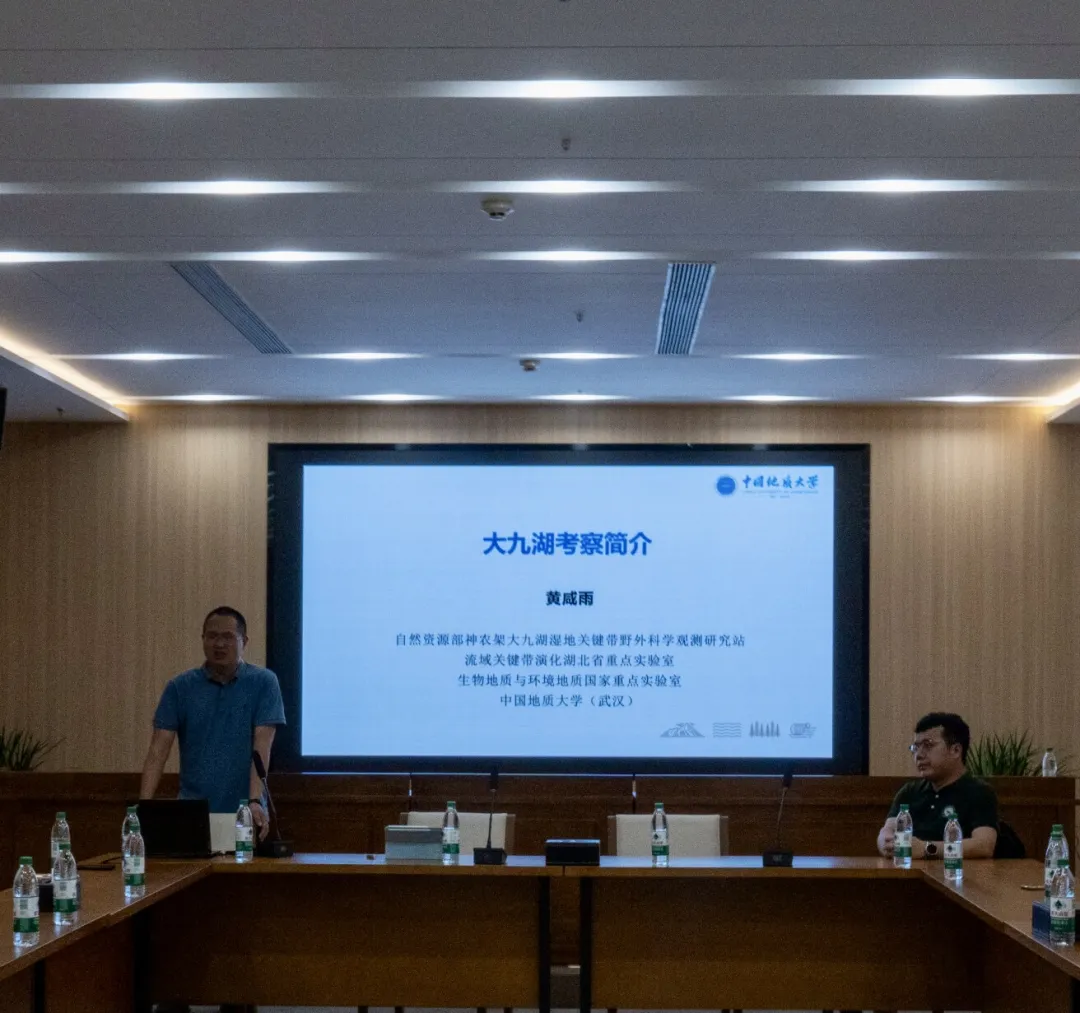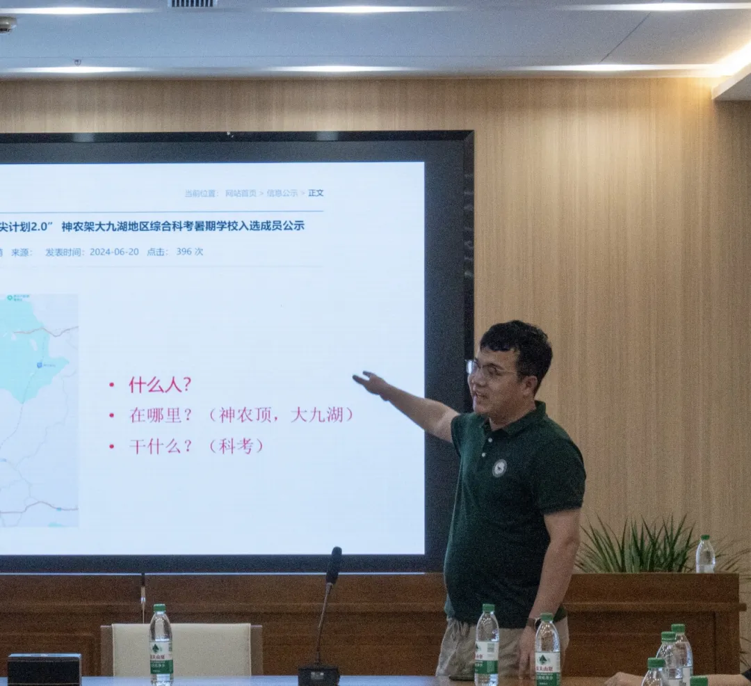黄咸雨教授和田力副研究员分别就“湿地与全球变化、古气候与古环境”主题向大家简单介绍了本次暑期学校举办的整体安排和目标定位。黄咸雨教授围绕着遗产地的突出全球普遍价值;神农架群的地质意义;泥炭湿地增汇减排;湿地与水质安全;湿地保护、恢复与旅游五个方面详解介绍了神农架生态重要性和地质地理背景,打破了学生们对神农架的“零认识”。他们希望学员们带着“黑土与泥炭的区别是什么、生物的多样性是什么、二叠纪与三叠纪的界限是什么”等问题参与科考,在为期5天的时间里进行体验式学习、沉浸式思考,获得学术视野的拓展创新思维的发散,完成一场“拔尖人才2.0”的蜕变成长。