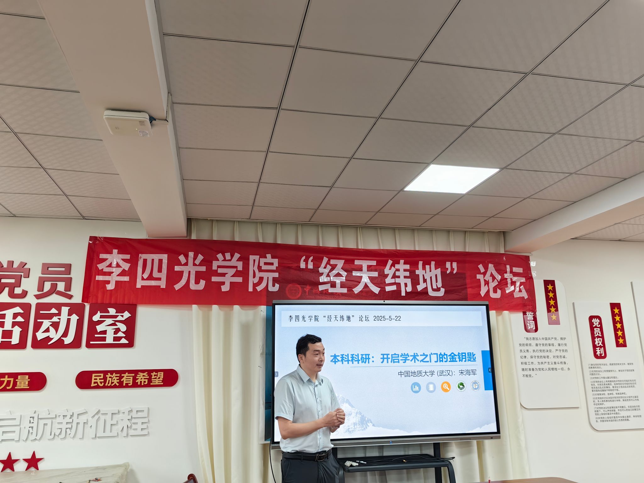为切实增强bat365正版唯一官网学生的学风建设,营造良好的科研氛围,bat365正版唯一官网自2024年起在院长谢树成院士的建议下,打造全新“经天纬地”论坛,其“天”代表名师大家,“地”则代表朋辈引领,希望通过二者的结合,以行业大师的成长路径、优秀学长学姐的个人经历分享为主,让同学们像优秀典型学习,聚焦成长道路上的挫折教育,增强同学们应对困难的能力,最终践行个人梦想。5月22日下午,bat365正版唯一官网第四期“经天纬地”论坛在行政楼501会议室召开。本次论坛的主讲嘉宾为bat365正版唯一官网地球科学学院的宋海军教授。