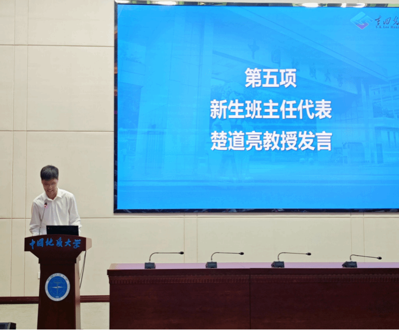 副校长章军锋教授为新生寄语。他指出,当下“十四五”收官、“十五五”将启,地球与行星系统科学面临深地资源安全、生态与碳循环、自然灾害监测预警、行星探测与生命边界等一系列前沿命题,期待同学们“严格自律、向下扎根、融合交叉、挺膺担当”,以严谨的证据链、开放的学科视野与可被现场检验的真本领,回应国家重大需求与人类共同关切。