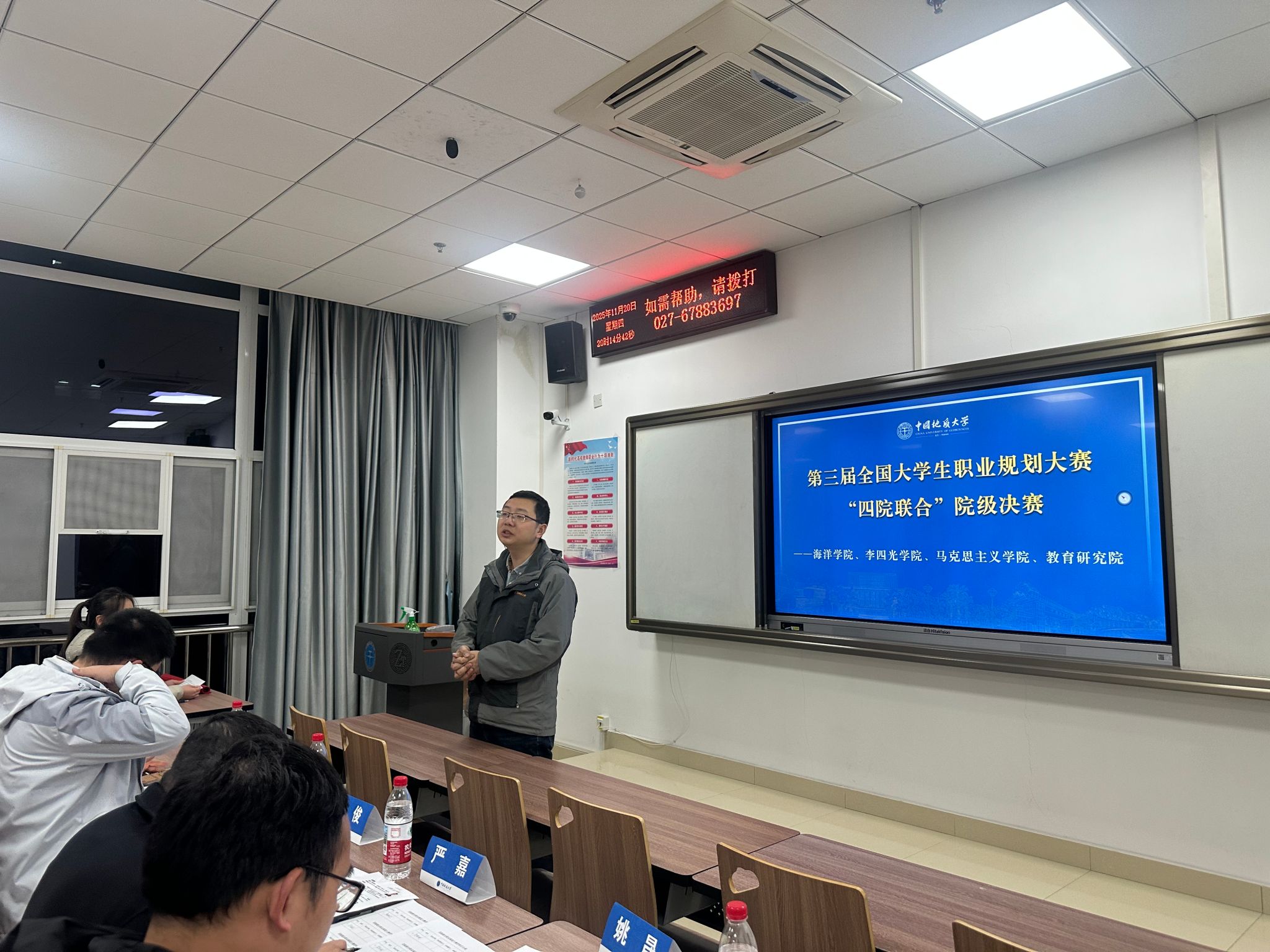 为深化高校生涯教育内涵建设,强化就业指导服务实效,引导大学生树立科学职业观与发展观,11月20日晚,由马克思主义学院、海洋学院、bat365正版唯一官网、教育研究院联合主办的第三届大学生职业规划大赛决赛在东区综合楼顺利落幕。经过院级初赛、专题培训等多轮严格筛选与激烈角逐,来自四院的12名优秀学子从众多参赛者中脱颖而出,在决赛舞台上充分展现了新时代青年的职业追求与青春担当。