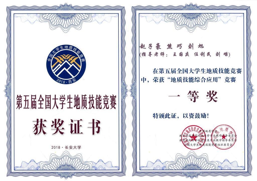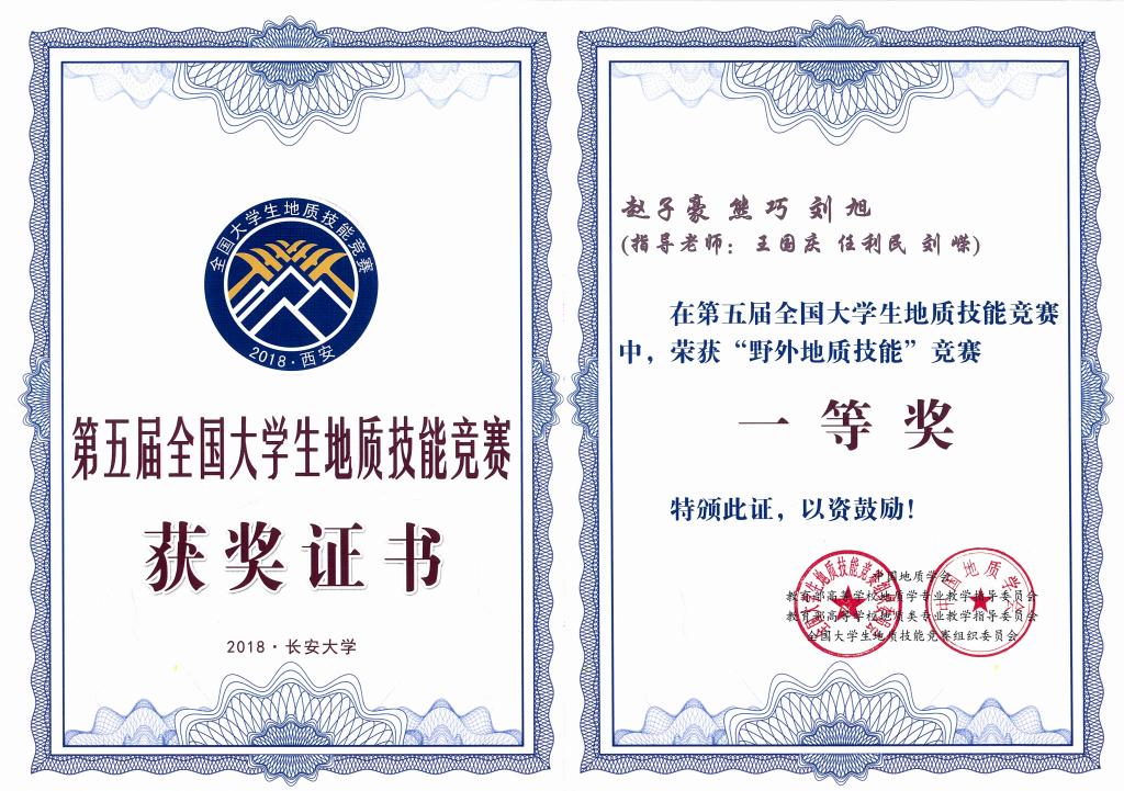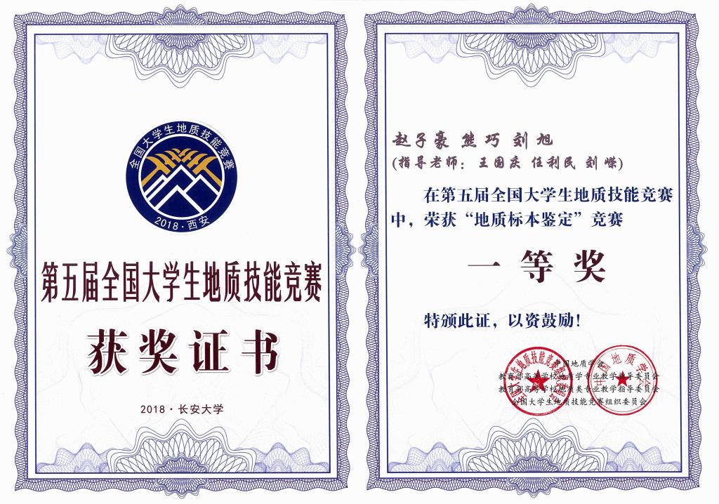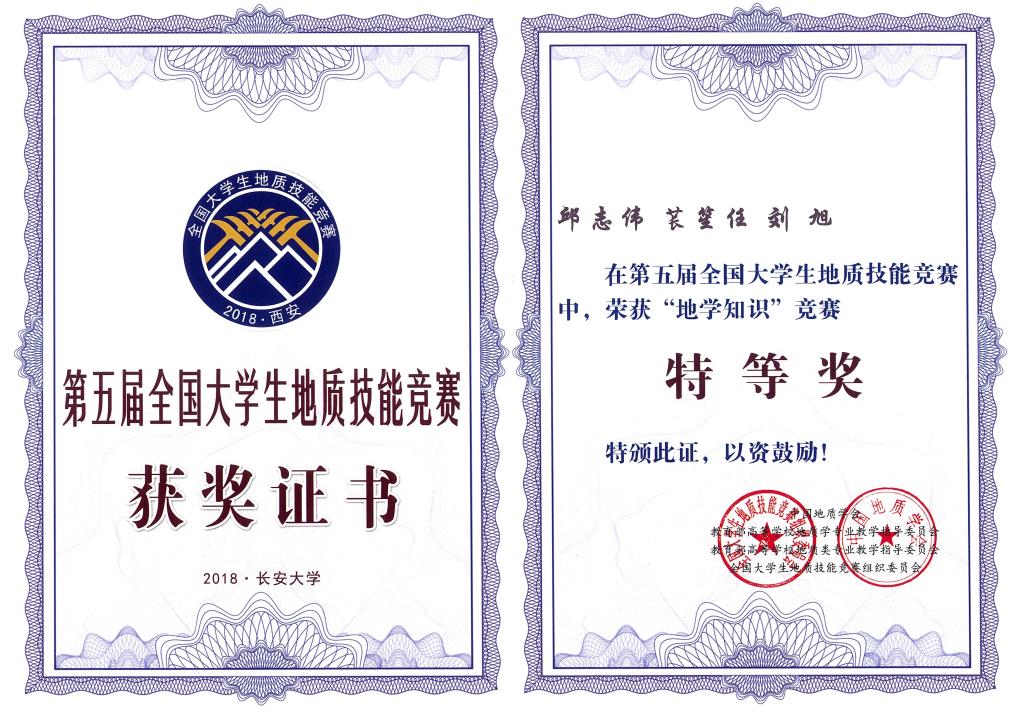 恭喜bat365官网2015级刘旭和熊巧同学在全国本科地质技能大赛中取得1项特等奖、3项一等奖和团队特等奖的好成绩!