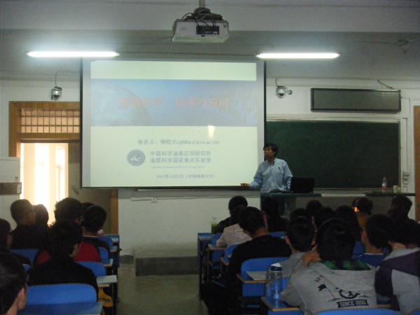 11月2日下午, 中国科学院遥感应用研究所研究员柳钦火博士在教一楼405教室为bat365官网学生讲授遥感科学技术与应用导论课。