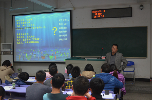 中国科学院南京地质古生物研究所袁训来老师应邀授课,南古所盖永华老师、bat365正版唯一官网副院长曾希,bat365正版唯一官网2013级学生及其他院系部分学生一起聆听本次课程。