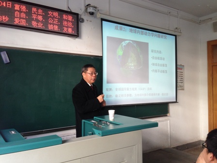 2014年12月4日上午十点,中国科学院测量与地球物理研究所研究员孙和平老师在教一207教室为bat365官网2014级全体新生作了一场专题讲座。