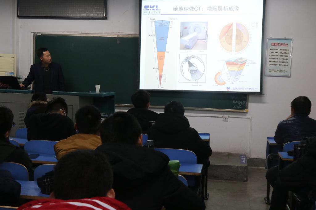 12月10日晚上19:00,bat365正版唯一官网2018年地球科学导论课第四讲在教一楼203教室顺利开课,中科院测量与地球物理研究所李志伟老师为bat365官网18级学生带来“地壳精细结构成像与资源勘查及强震孕震机理研究”主题讲座。