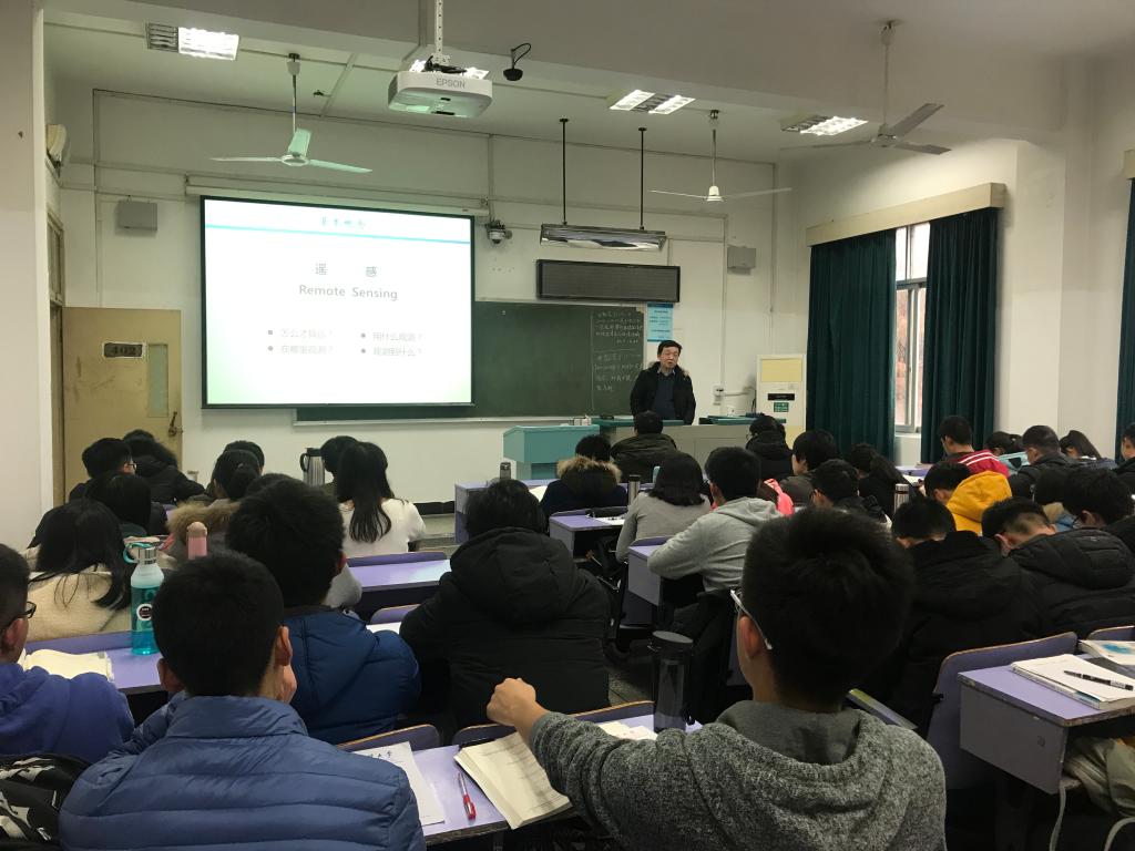 12月20日下午16:00,bat365正版唯一官网2018年地球科学导论课第七讲在教三楼403教室顺利开课,中科院测量与地球物理研究所凌峰老师为bat365官网18级学生带来“遥感技术基础与多学科应用”主题讲座。