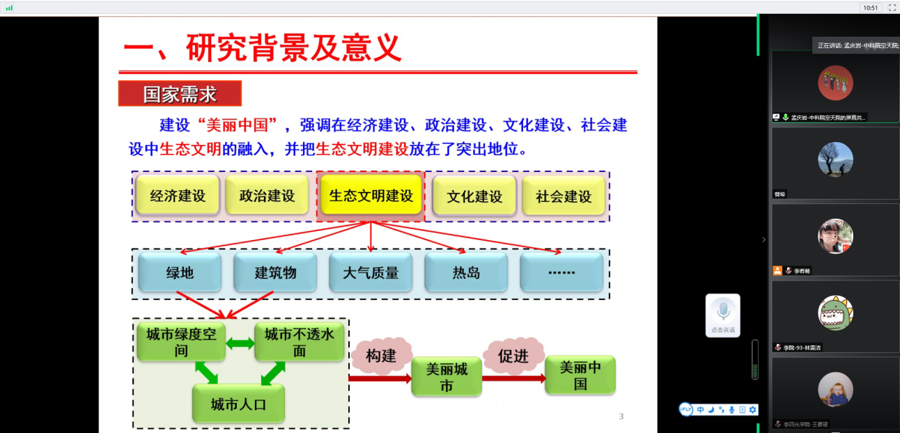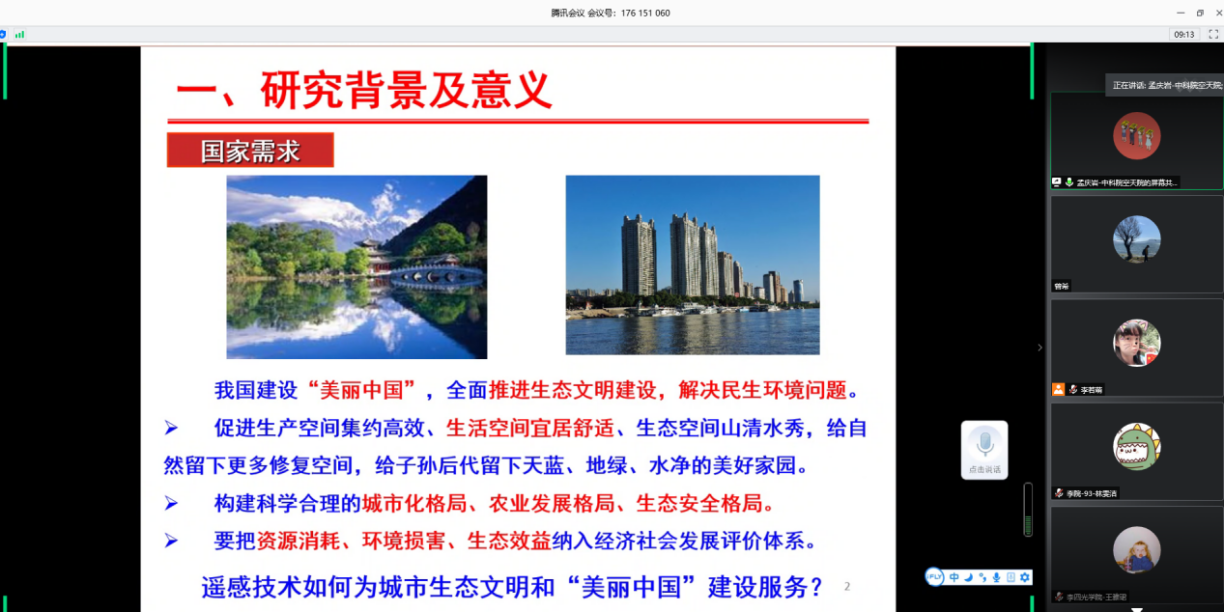 5月19日下午,bat365正版唯一官网2020年地球科学导论系列课程《城市环境遥感》顺利开讲,来自中科院空天信息创新研究院的孟庆岩研究员通过线上腾讯会议的方式,为bat365官网学生授课。