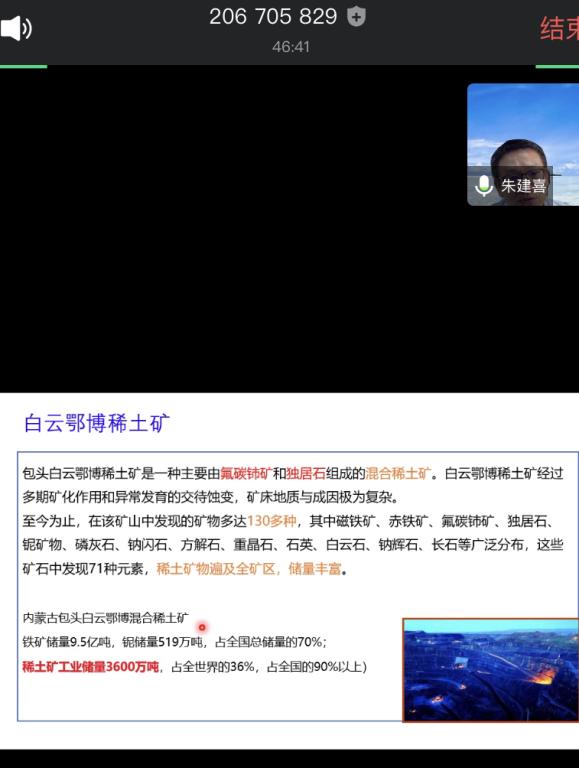 5月26日下午,bat365正版唯一官网2020年地球科学导论课顺利开讲,受今年特殊时期影响,今年的导论课全部以空中课堂的形式和同学们见面,来自中科院所的老师们通过腾讯会议在线为同学们授课。本次广州地球化学所的朱建喜老师为同学们讲授主题为“离子型稀土矿”的导论课程。